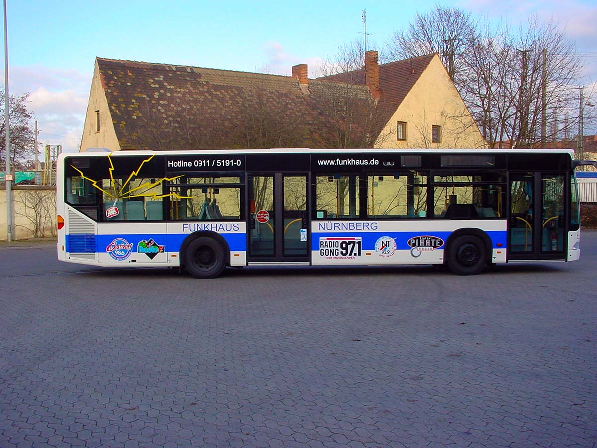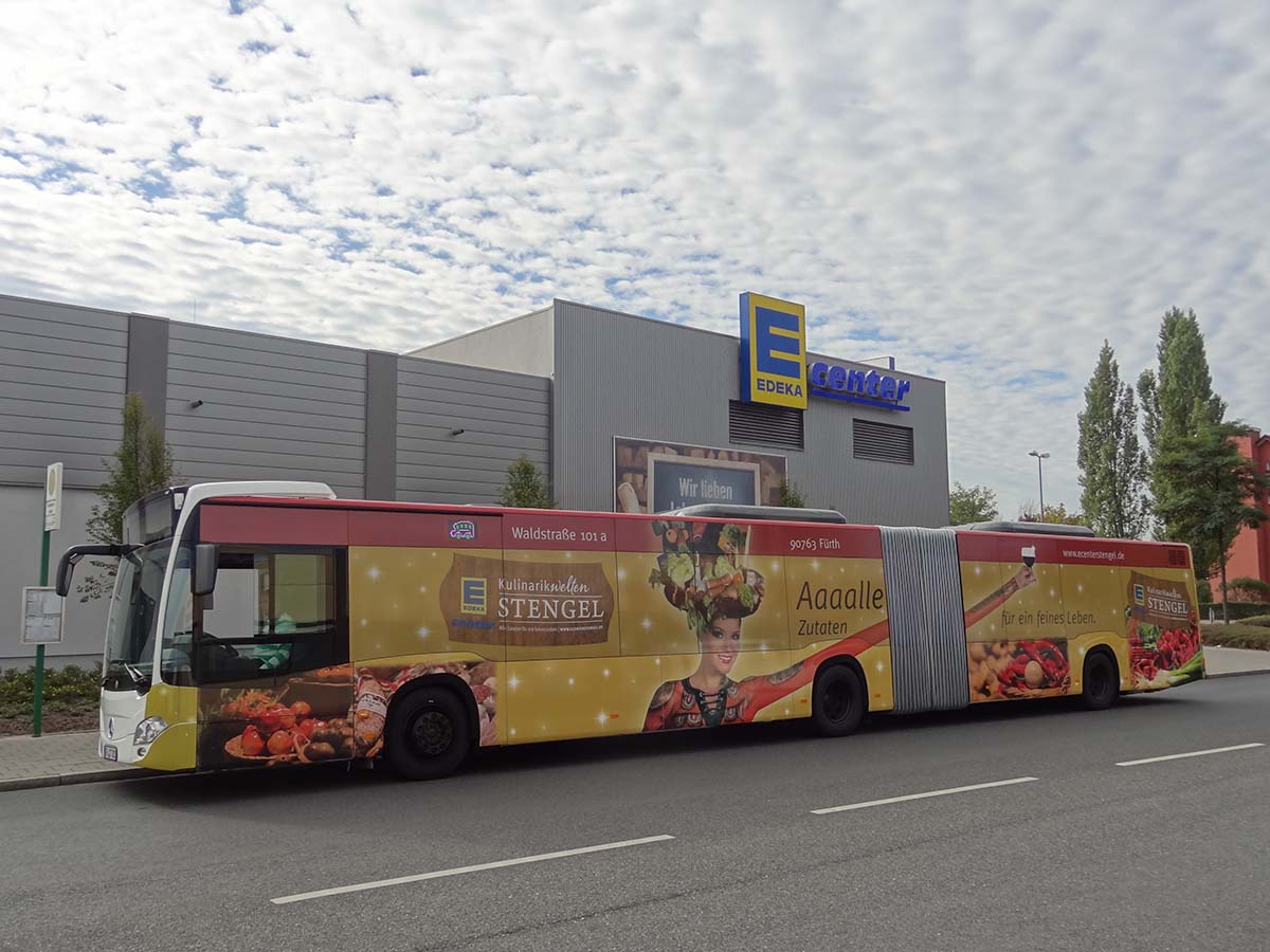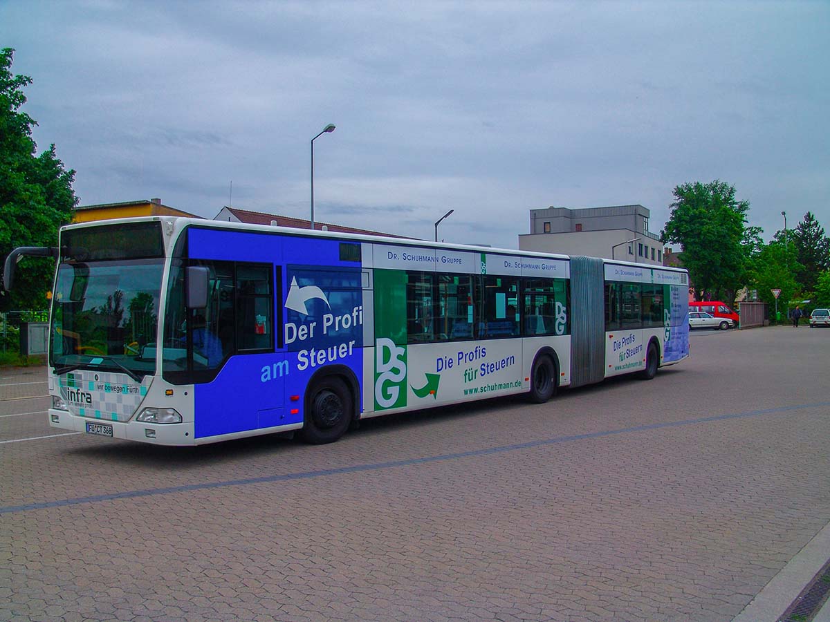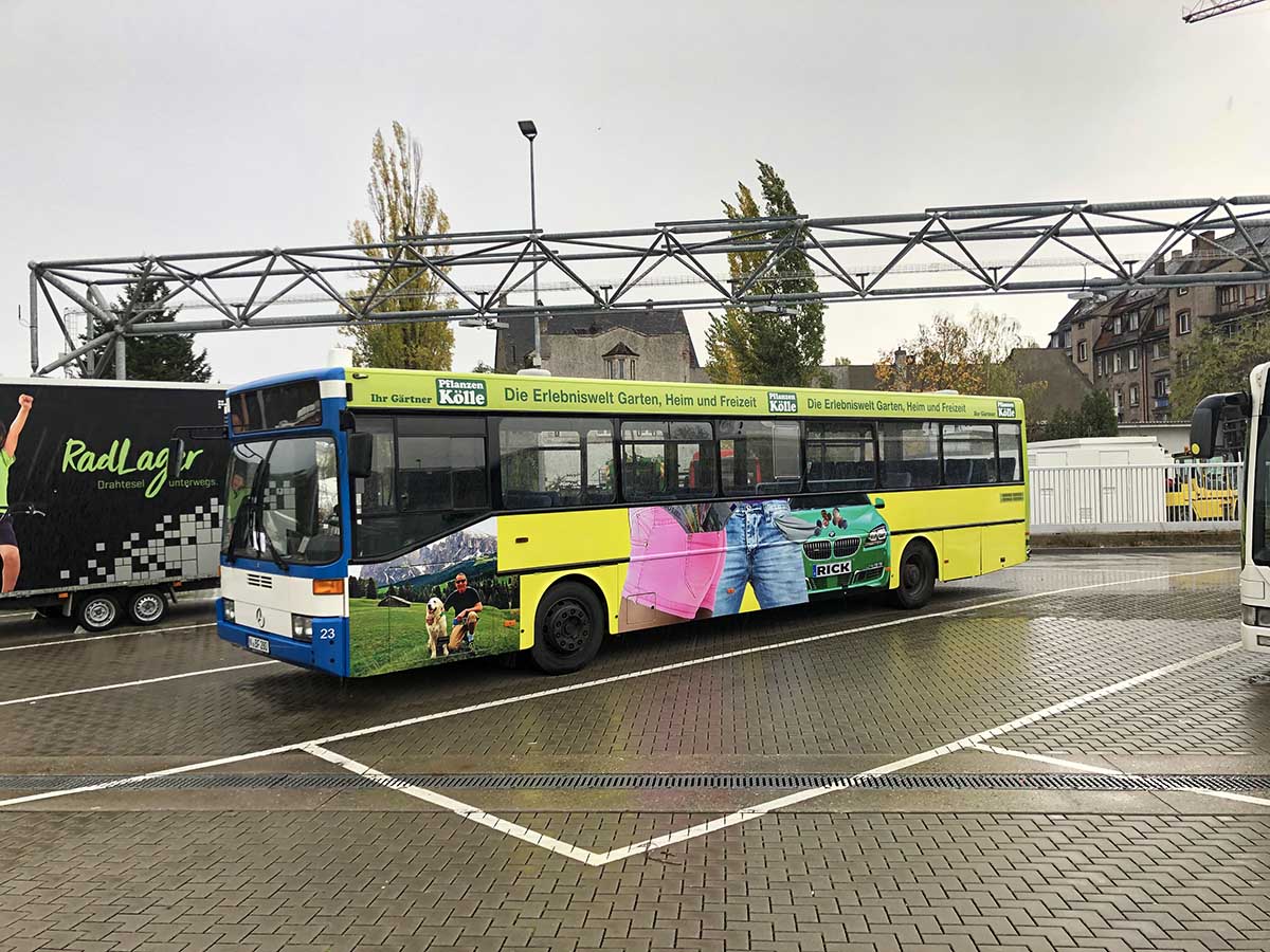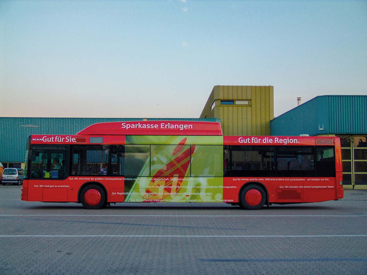 Seit Jahren ist unser Spezialgebiet die Busgestaltung und Beschriftung, insbesondere für den regionalen ÖPNV, der Infra Fürth und den Verkehrsverbund Großraum Nürnberg (VGN). Omnibusmodelle wie MAN, Setra, Mercedes oder Solaris wurden von uns bereits vielfach verklebt. Höchste Qualität der Folien und der Beklebung garantieren eine langfristige Haltbarkeit der Folienbeschriftungen.
