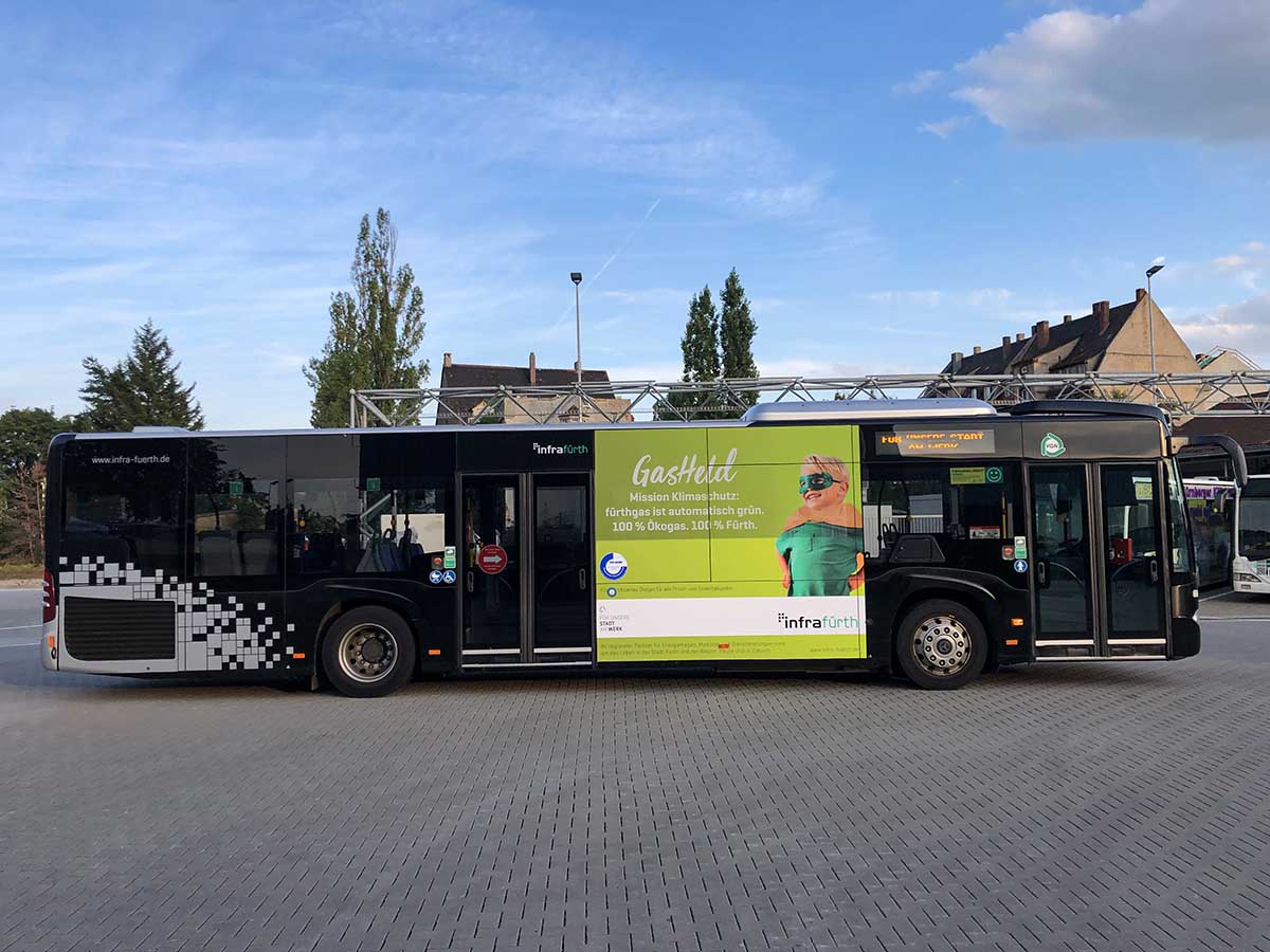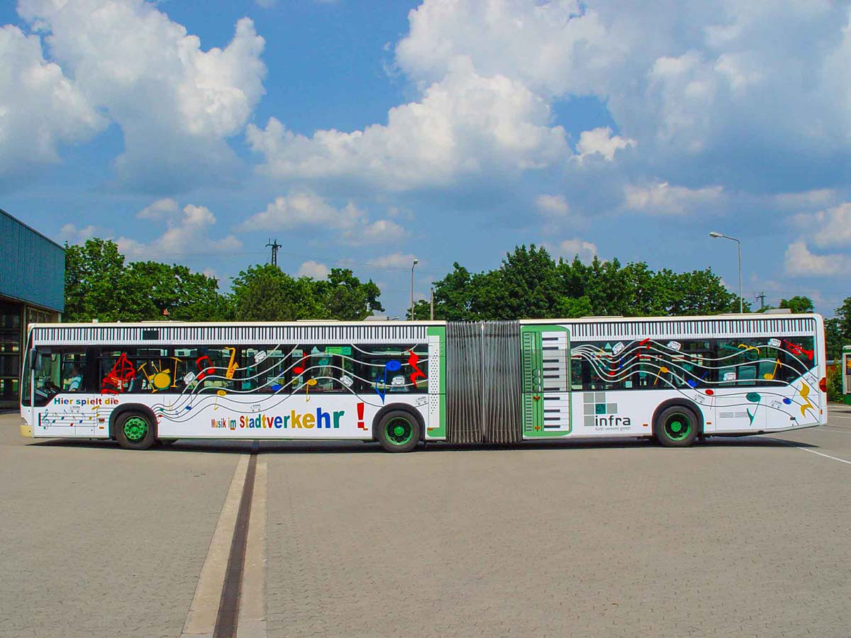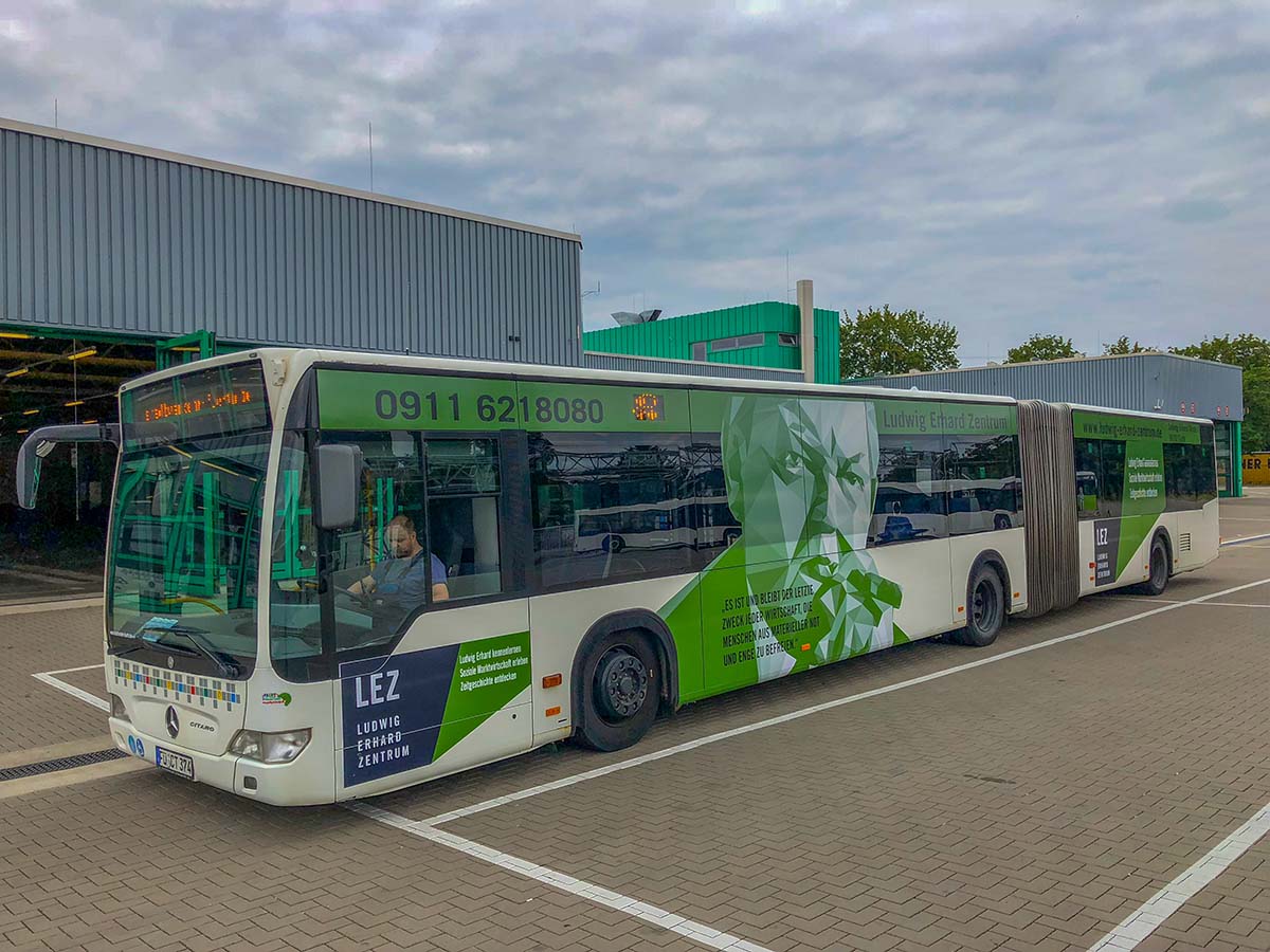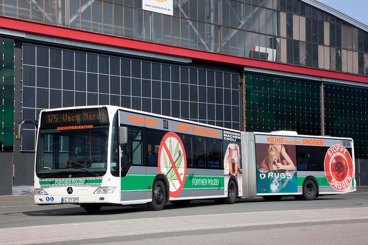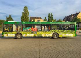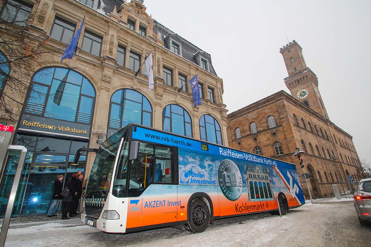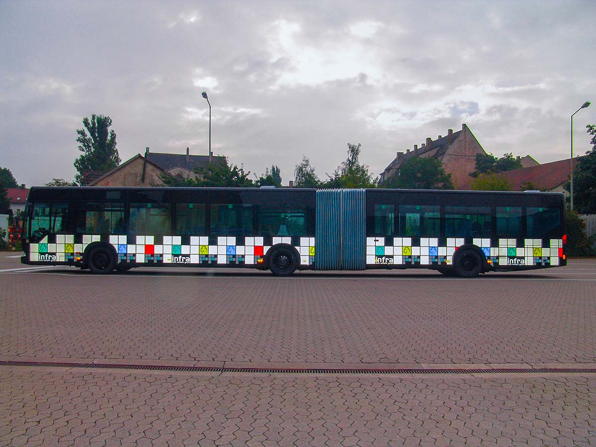 Seit Jahren ist unser Spezialgebiet die Busgestaltung und Beschriftung, insbesondere für den regionalen ÖPNV, der Infra Fürth und den Verkehrsverbund Großraum Nürnberg (VGN). Omnibusmodelle wie MAN, Setra, Mercedes oder Solaris wurden von uns bereits vielfach verklebt. Höchste Qualität der Folien und der Beklebung garantieren eine langfristige Haltbarkeit der Folienbeschriftungen.