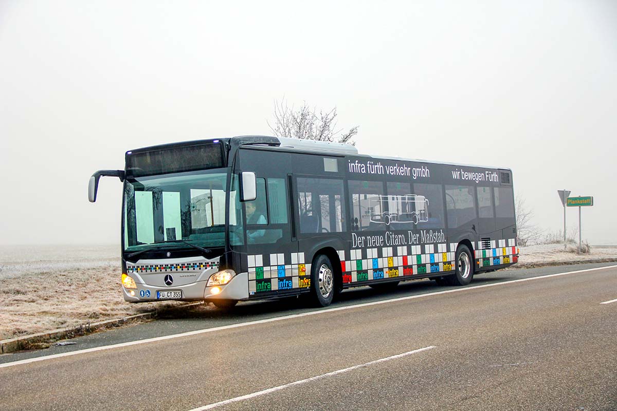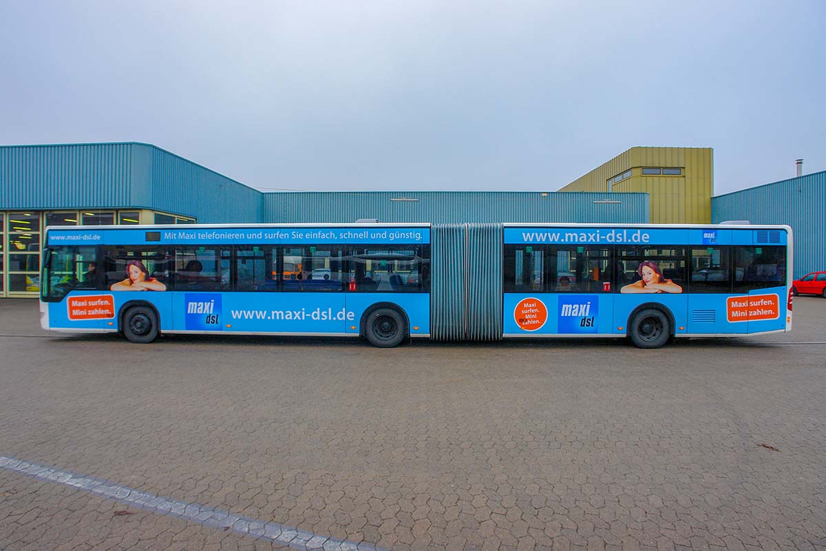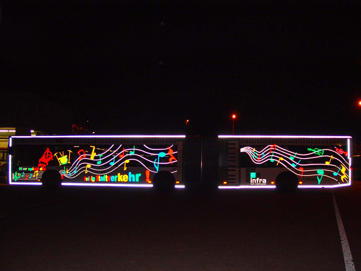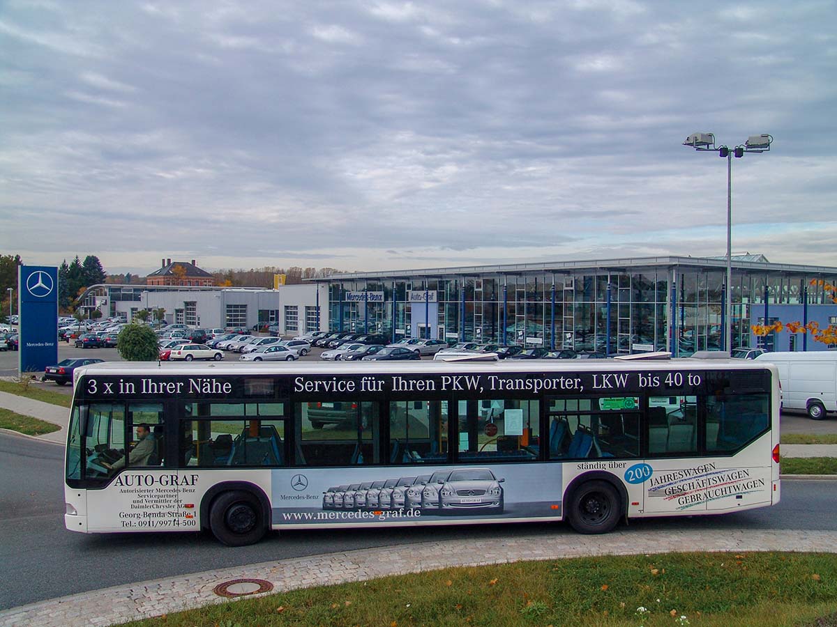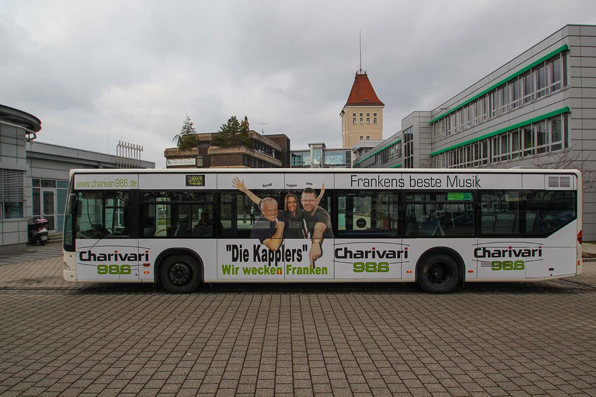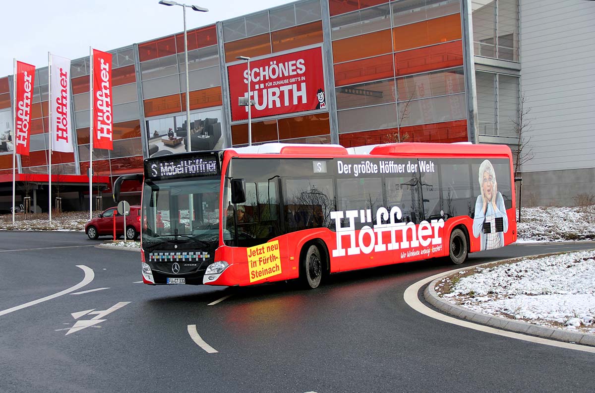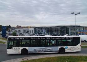 Seit Jahren ist unser Spezialgebiet die Busgestaltung und Beschriftung, insbesondere für den regionalen ÖPNV, der Infra Fürth und den Verkehrsverbund Großraum Nürnberg (VGN). Omnibusmodelle wie MAN, Setra, Mercedes oder Solaris wurden von uns bereits vielfach verklebt. Höchste Qualität der Folien und der Beklebung garantieren eine langfristige Haltbarkeit der Folienbeschriftungen.