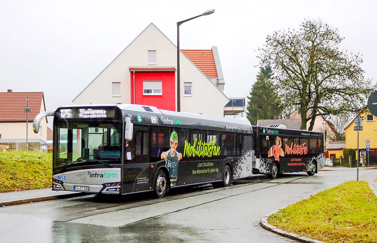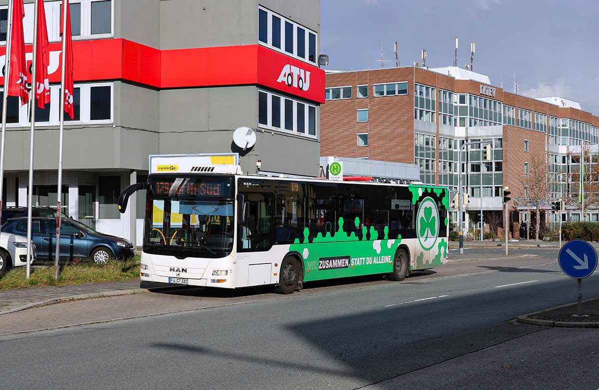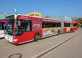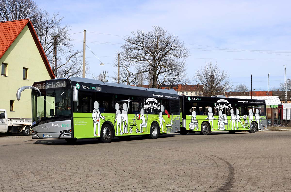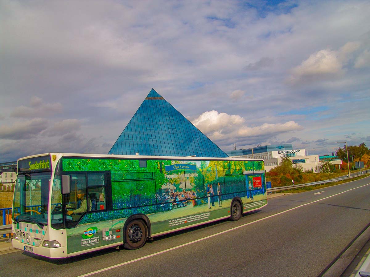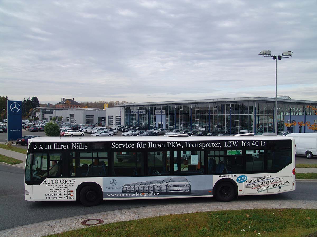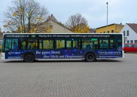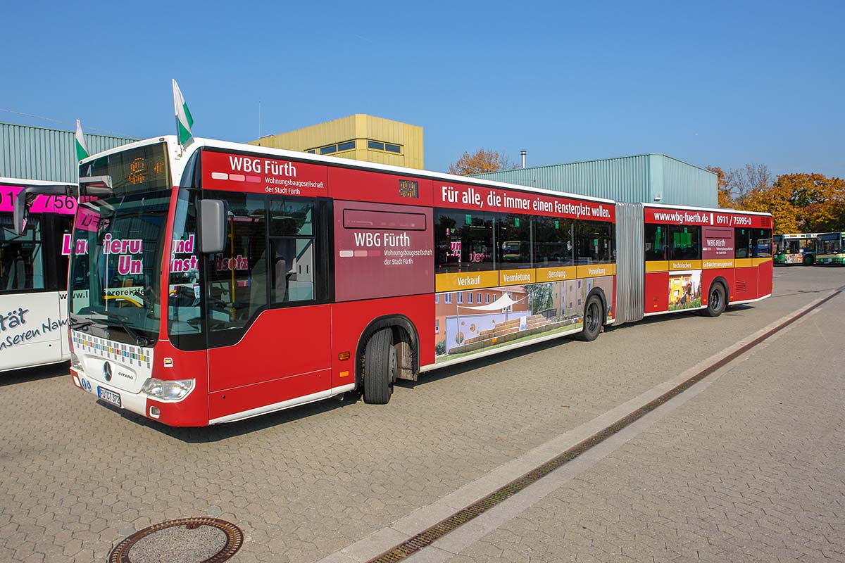Seit Jahren ist unser Spezialgebiet die Busgestaltung und Beschriftung, insbesondere für den regionalen ÖPNV, der Infra Fürth und den Verkehrsverbund Großraum Nürnberg (VGN). Omnibusmodelle wie MAN, Setra, Mercedes oder Solaris wurden von uns bereits vielfach verklebt. Höchste Qualität der Folien und der Beklebung garantieren eine langfristige Haltbarkeit der Folienbeschriftungen.