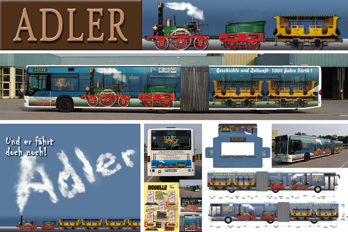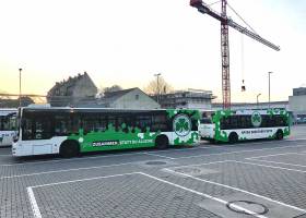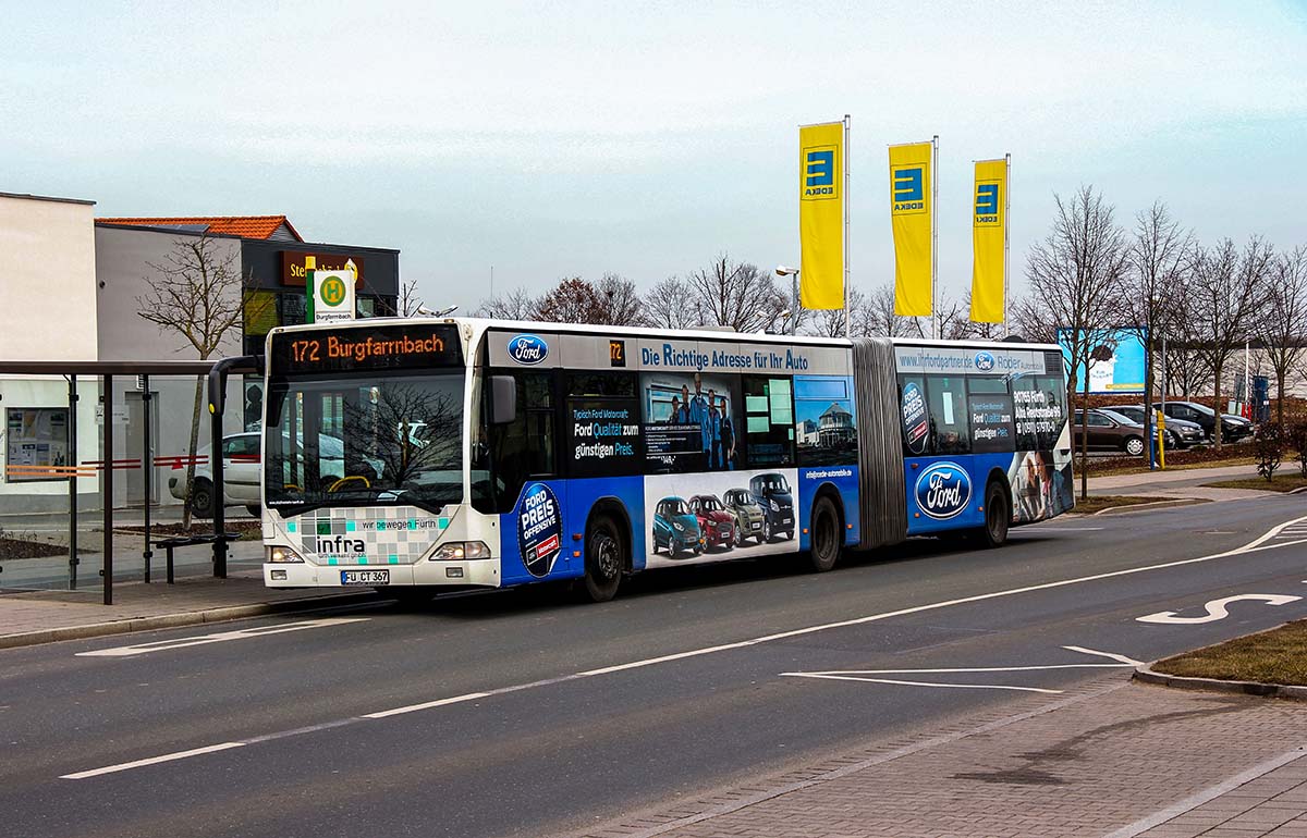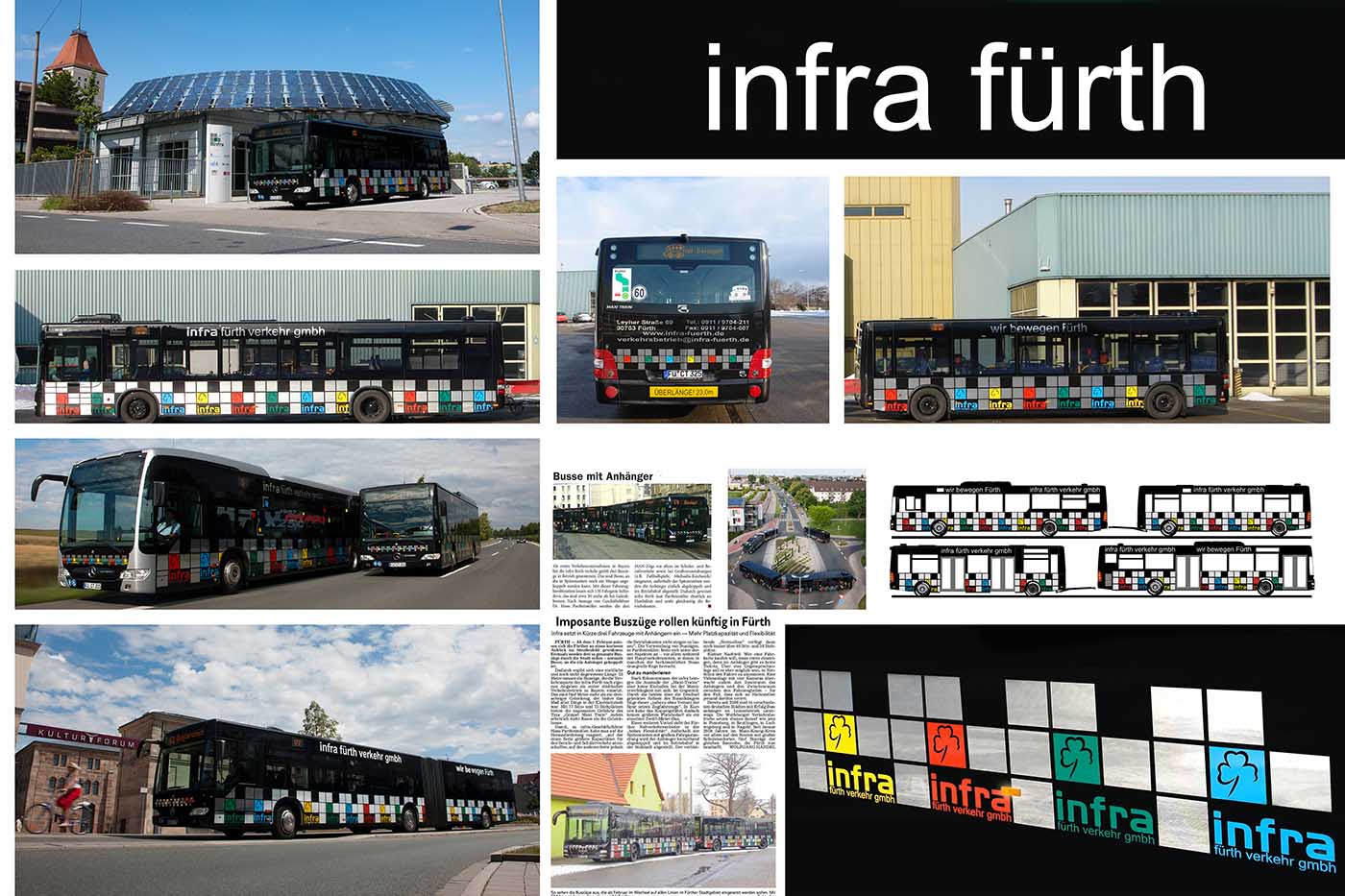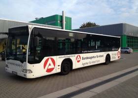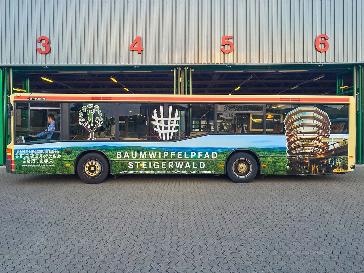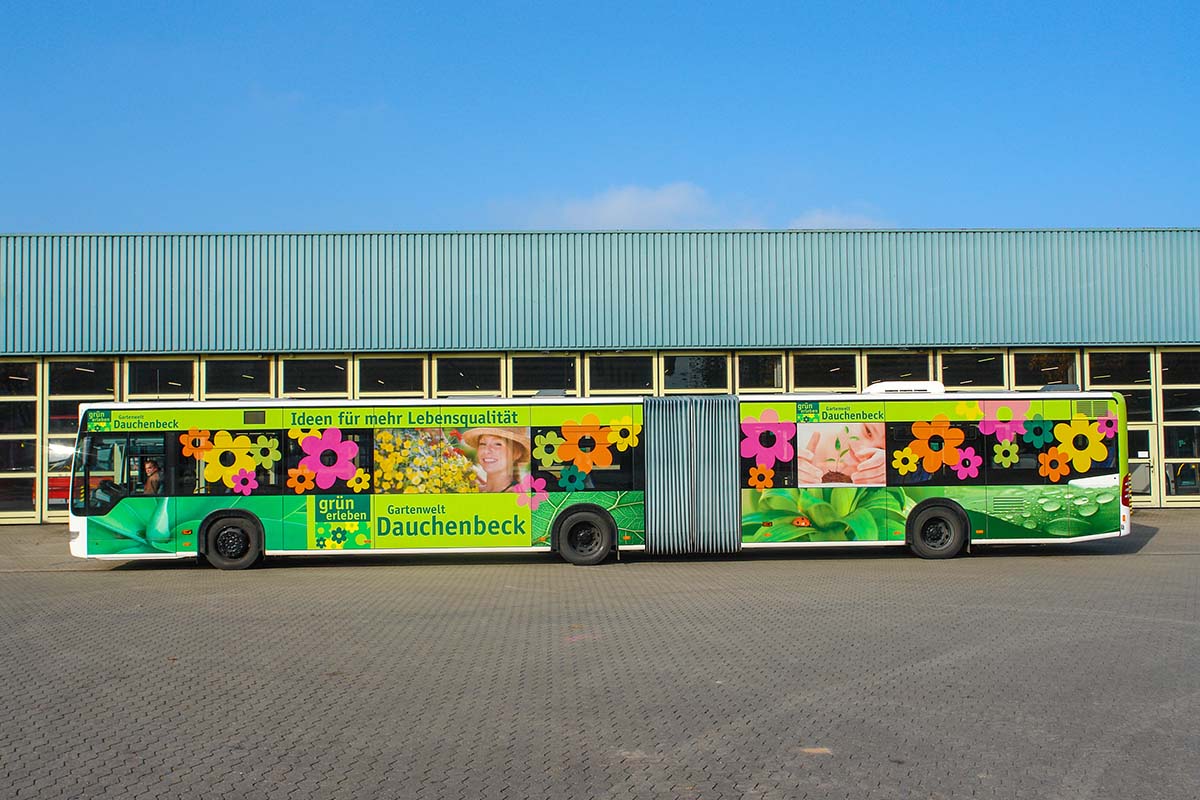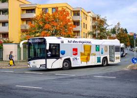 Seit Jahren ist unser Spezialgebiet die Busgestaltung und Beschriftung, insbesondere für den regionalen ÖPNV, der Infra Fürth und den Verkehrsverbund Großraum Nürnberg (VGN). Omnibusmodelle wie MAN, Setra, Mercedes oder Solaris wurden von uns bereits vielfach verklebt. Höchste Qualität der Folien und der Beklebung garantieren eine langfristige Haltbarkeit der Folienbeschriftungen.